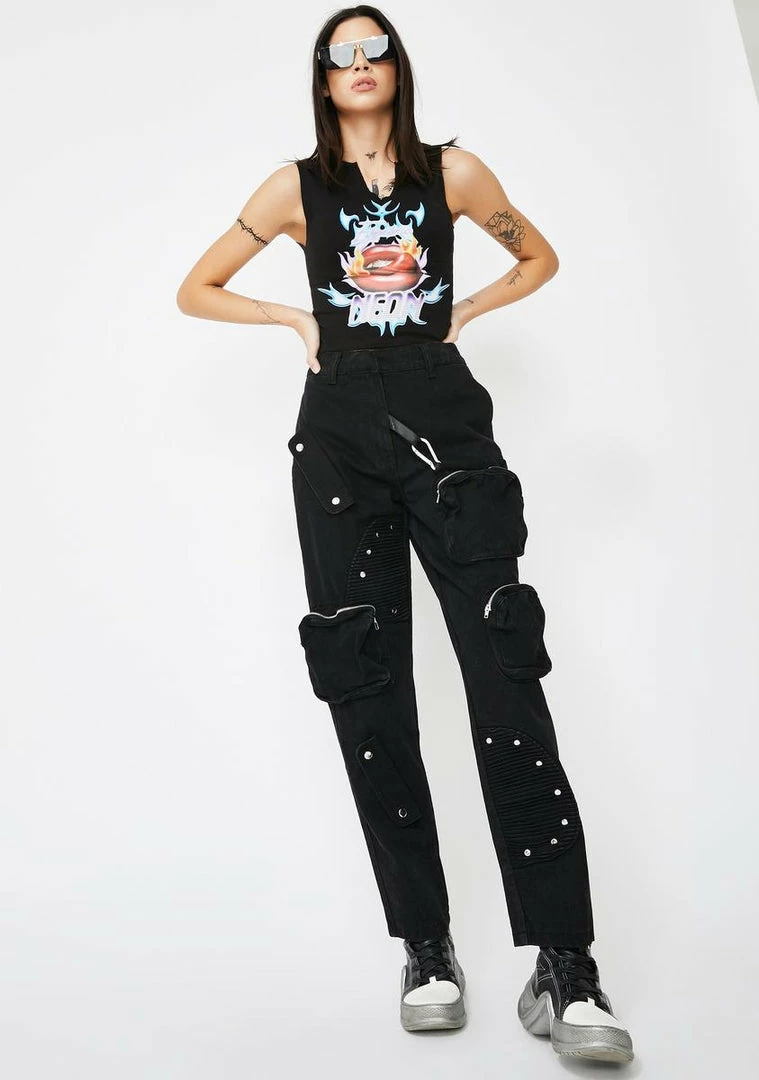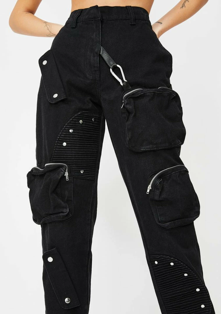 cuz youΓ’ΒΒre always at the top, sis! Stay ahead of the game in these sikk high waisted denim jeans that have 3D cargo pockets all ova, a relaxed fit, and an elasticated waistband.