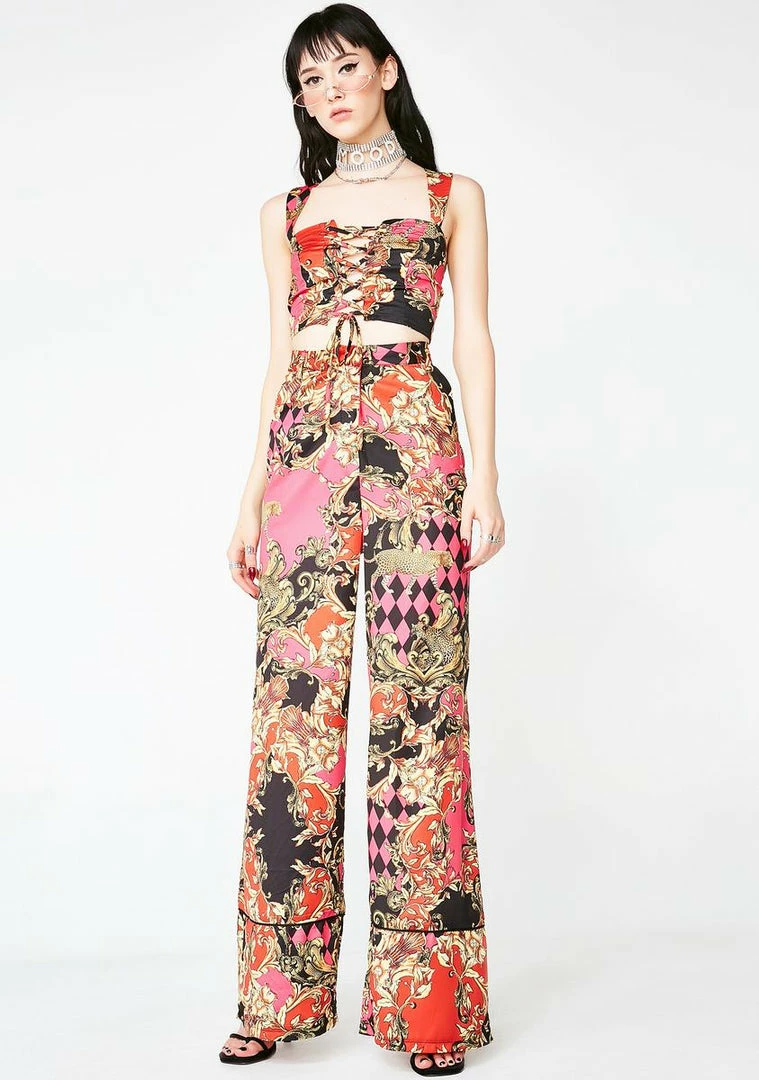 cuz you want moรขยย money. Look fab AF in this tank top that has an all ova print, a lace-up Nรขยย back zip detail and a cropped fit.