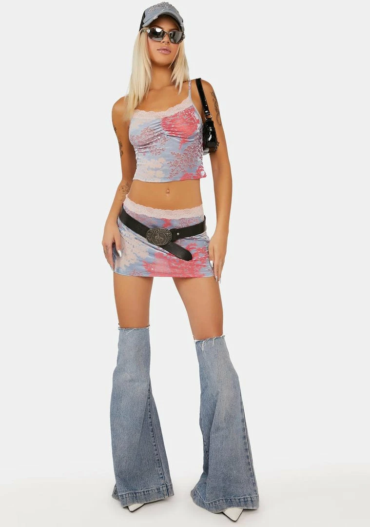 cuz you’re a dreamer. This top has an all over floral print, a velvet construction, lace detailing, adjustable shoulder straps, and a cropped fit.