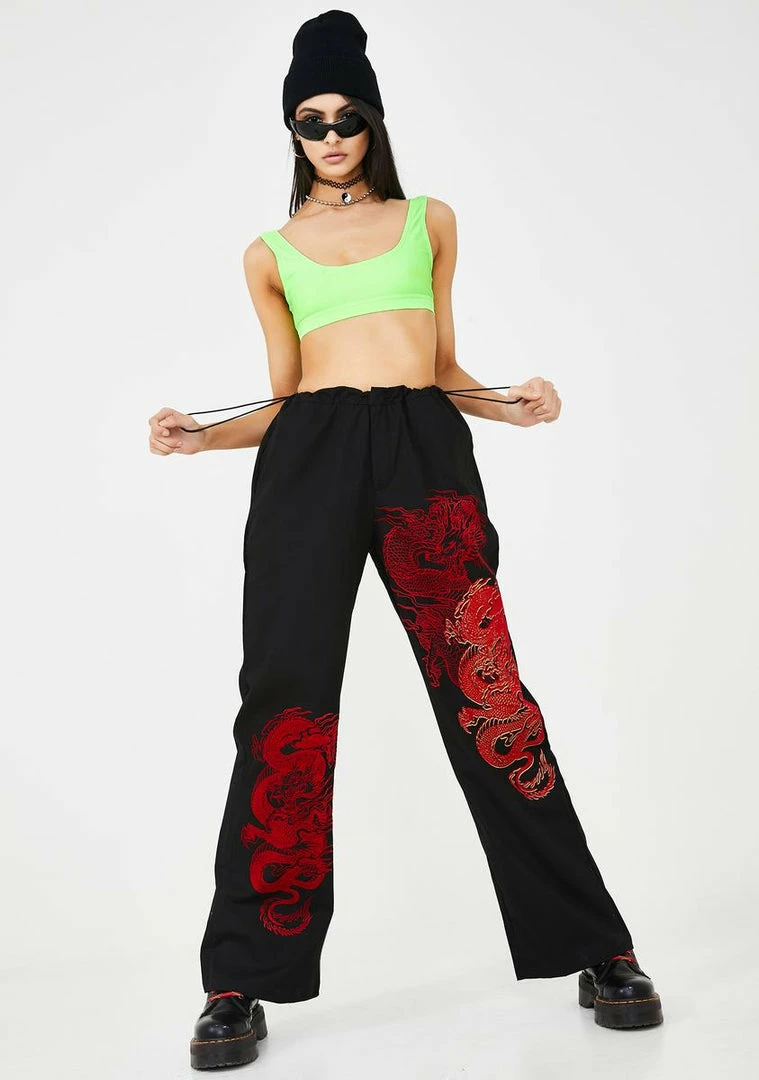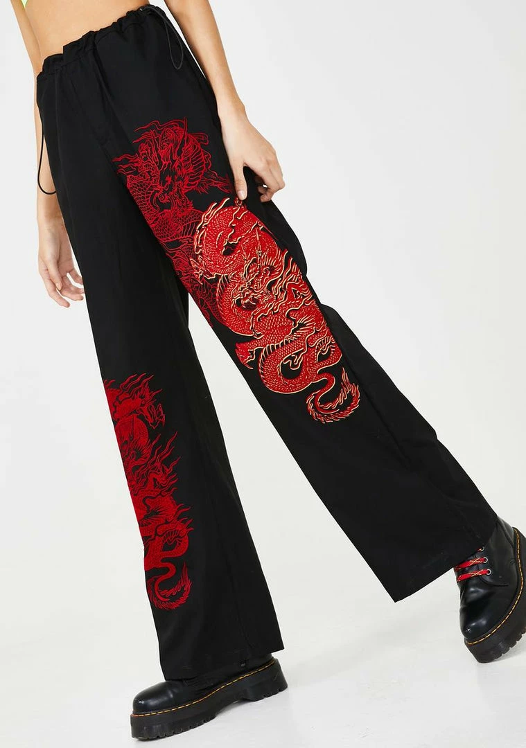 cuz you always bring the heat. Give Γ’ΒΒem no mercy in these metallic dragon print joggers that have a relaxed fit, pockets on the sides, and a drawstring waistband.