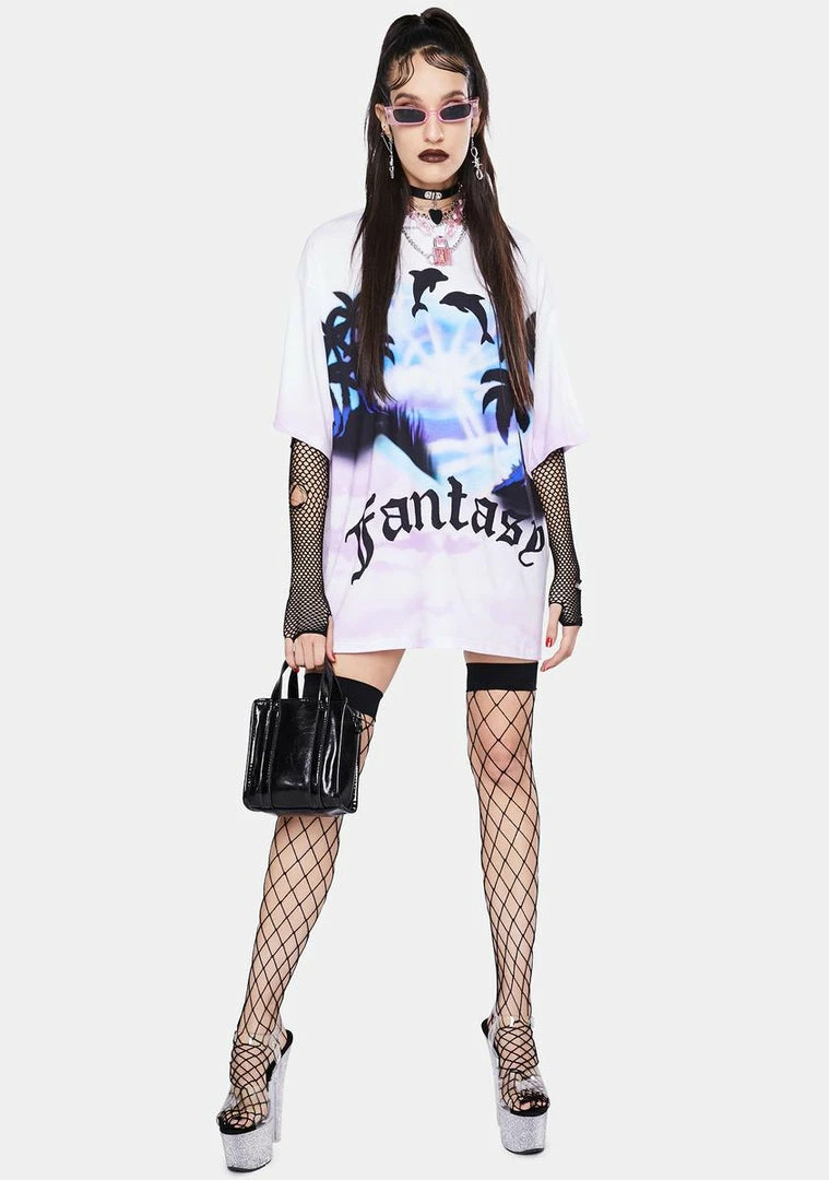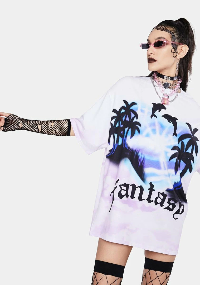 cuz youΓ’ΒΒre lost in a daydream. This oversized t-shirt has short sleeves and airbrushed scene graphics on the front.