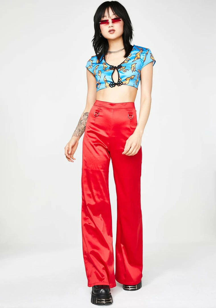 cuz youΓ’ΒΒre the ultimate fire babe! Turn up the heat in this supa cute high neck crop top that has button closures, cut-outs on the front, and a flame print all ova.