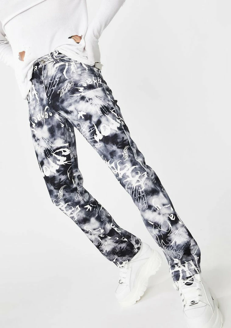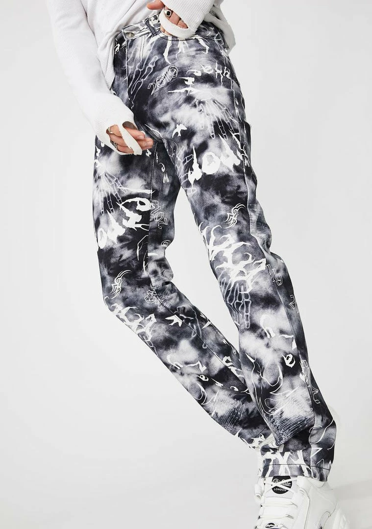 cuz youΓ’ΒΒre not one to be messed with. Look dope AF in these boyfriend jeans that have a relaxed fit, front NΓ’ΒΒ back pockets, sikk graphics and a tie dye pattern all ova.