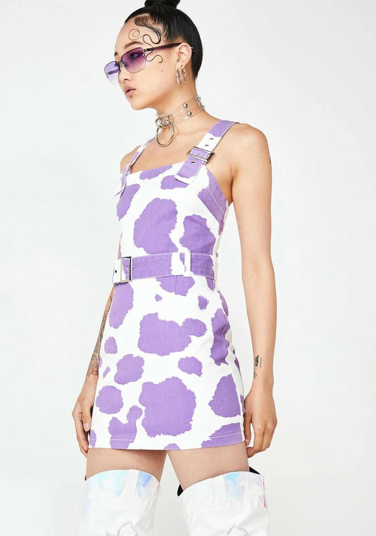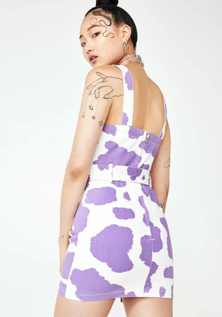 cuz youΓ’ΒΒre a whole damn mooΓ’ΒΒd, sis! Give em somethinΓ’ΒΒ to talk about in this funky lil number that has a square neckline, thicc adjustable buckle straps, a detachable belt with silver hardware, and your fave cow print all ova!