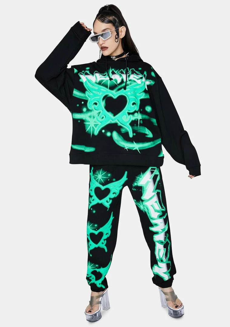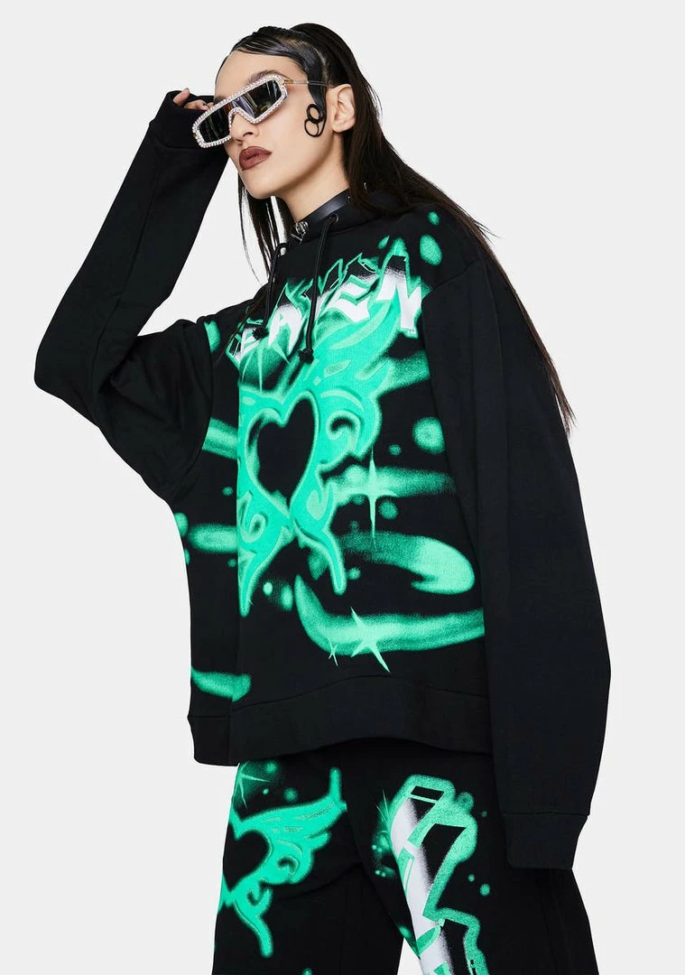 cuz youΓ’ΒΒre flying away. This oversized hoodie has drawstring pulls, a Γ’ΒΒheavenΓ’ΒΒ text print on the front, and heart graffiti graphics with butterfly wings.