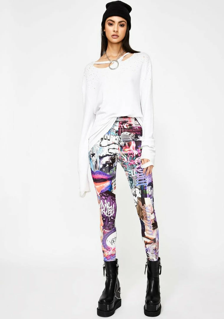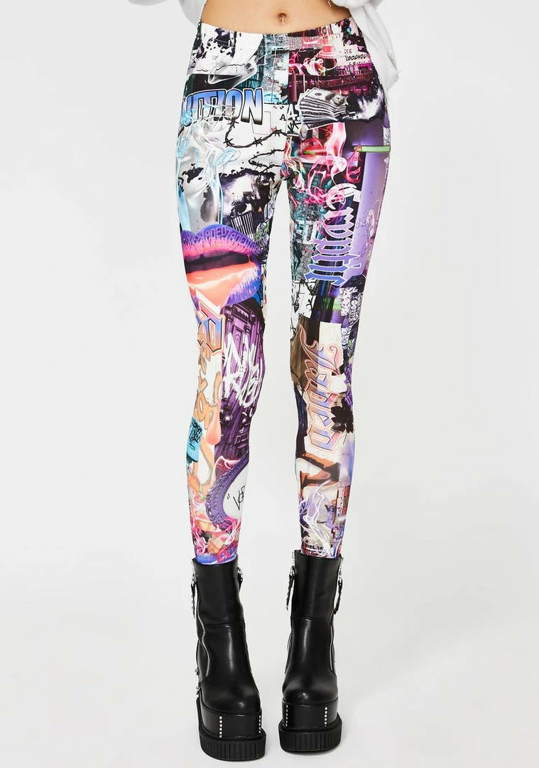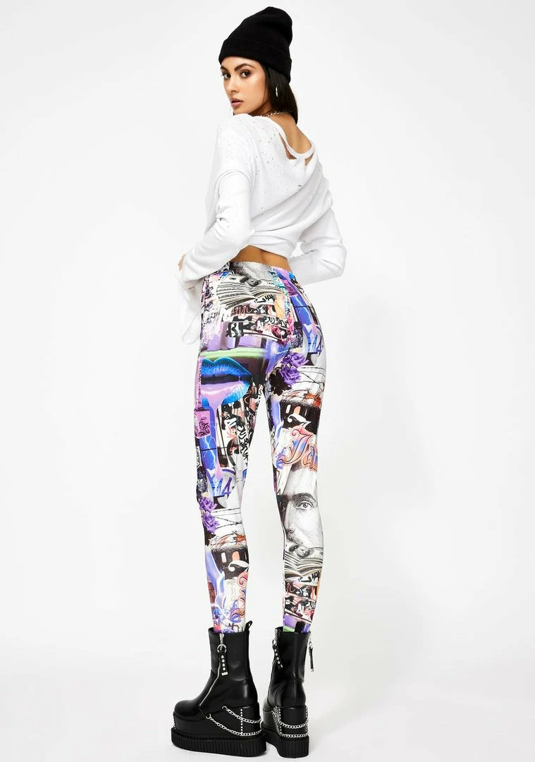 cuz the rumors are true, bb! YouΓ’ΒΒre one hott vixen in these dope AF leggings that have a bodycon fit and a sikk collage print all ova.