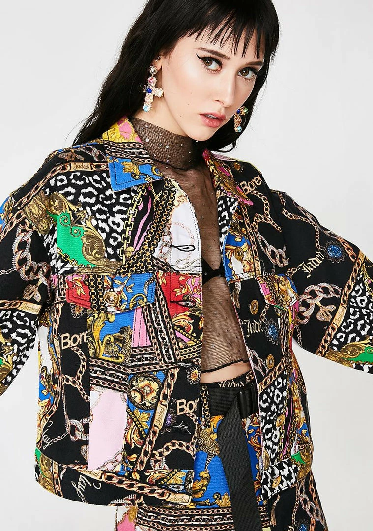 cuz youâre a high vibinâ top shelf Queen! Stay bad Nâ boujee in this high sass button-up jacket that has a regular fit Nâ fancy chainz Nâ dope animal designs printed all ova.