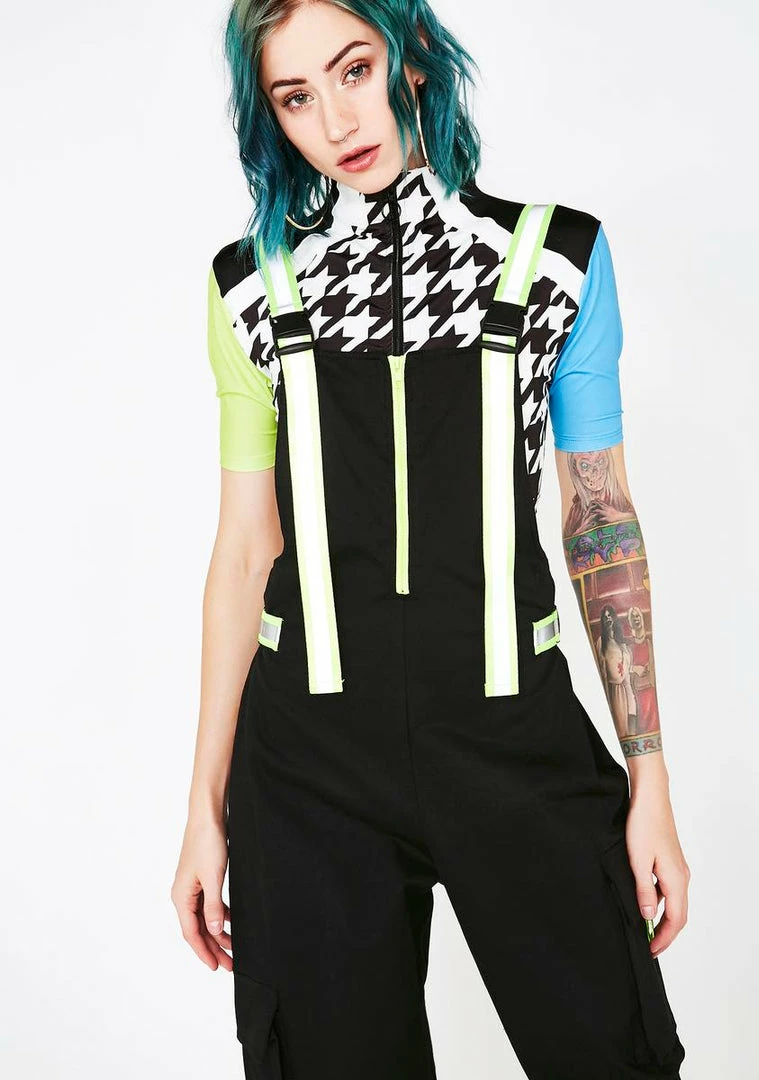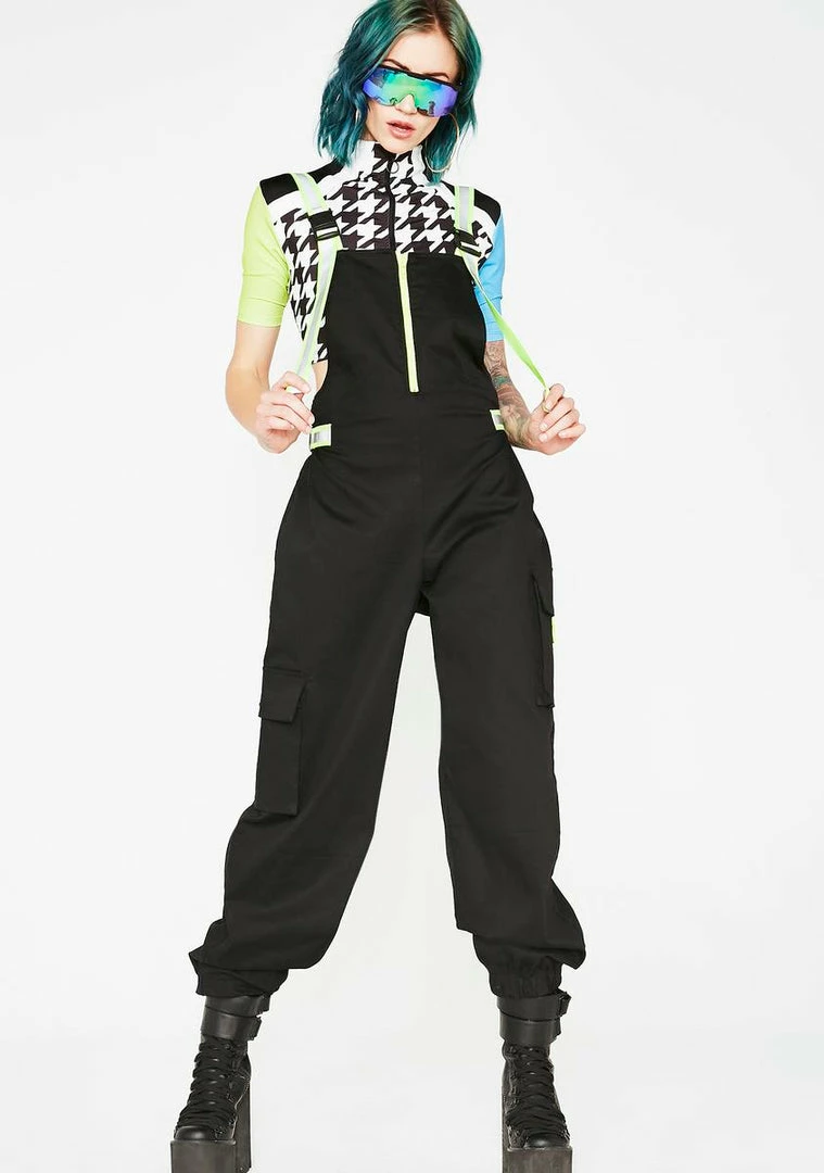 cuz they always see ya cominΓ’ΒΒ babe! Enter the room in style with these cargo overalls that have adjustable reflective buckle straps, functional pockets, a relaxed fit, and a front zip closure.