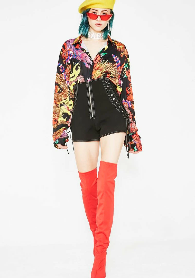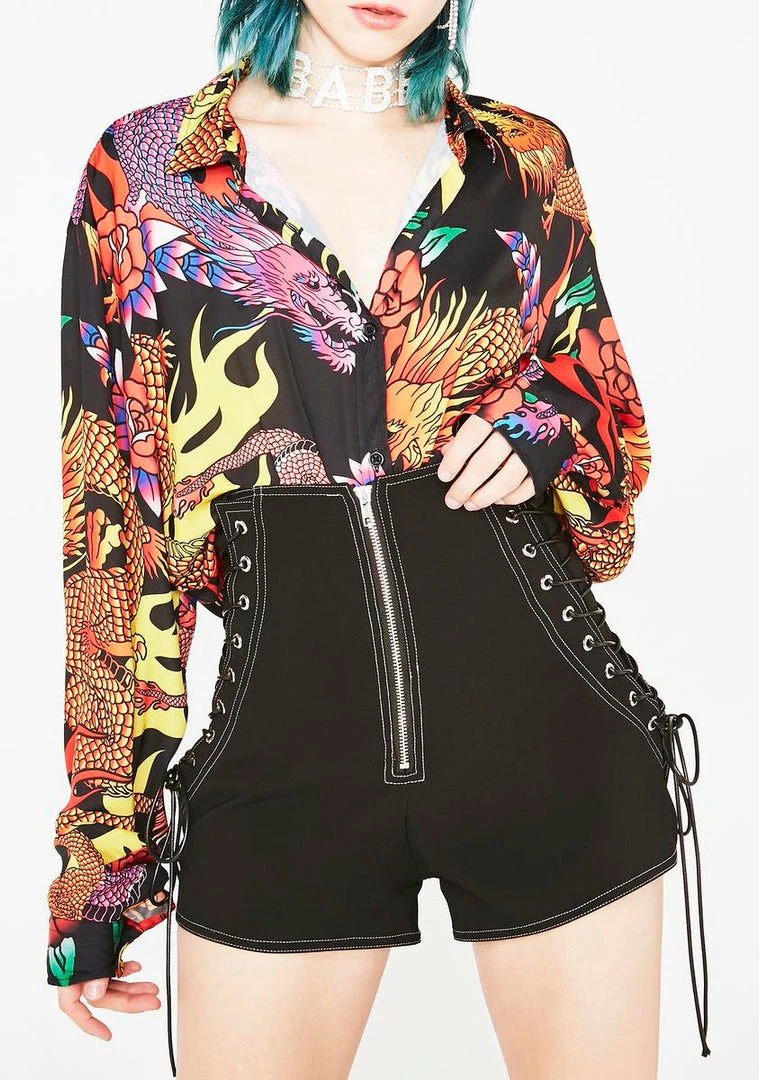 cuz itΓ’ΒΒs baddie alert when ya walk into the room! Slay them in style with these high waist shorts that have a front zip closure, contrast top stitching, and adjustable lace-ups on the sides.