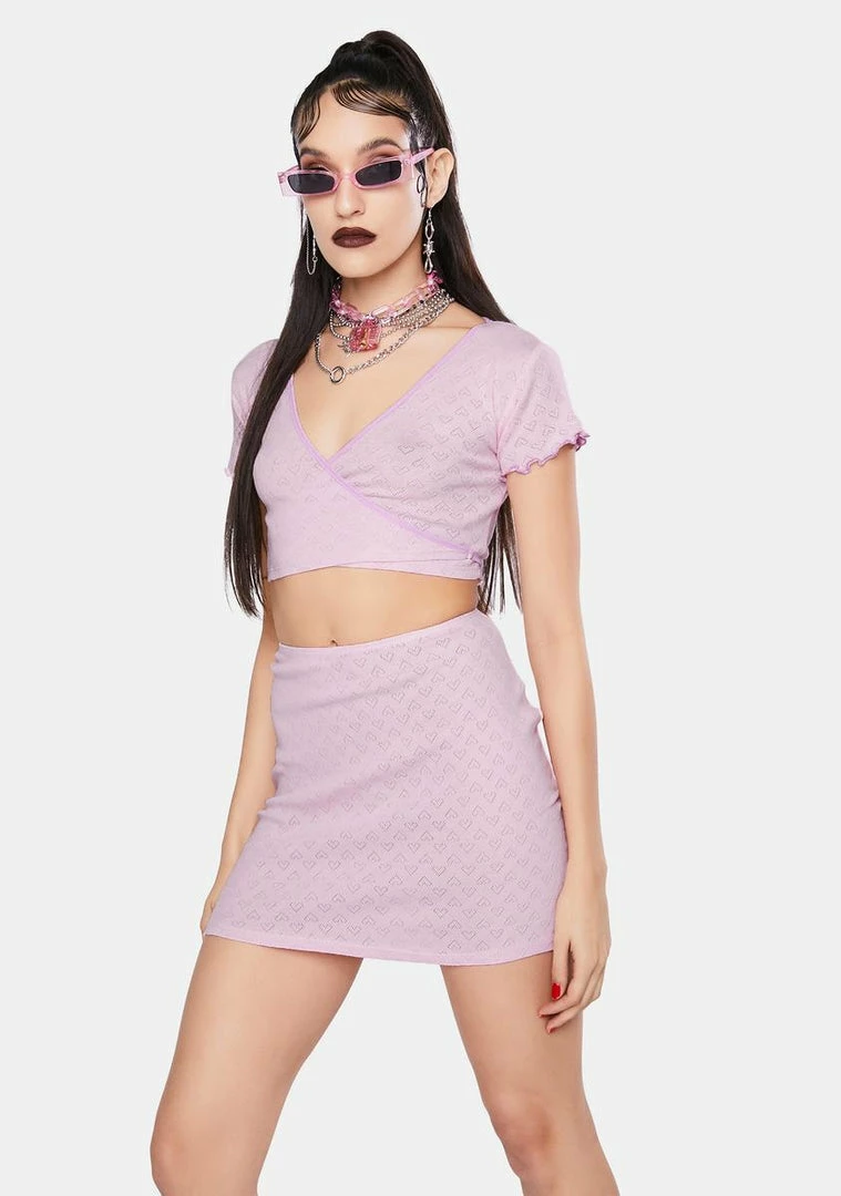 cuz you got a lot of love. This lightweight jersey mini skirt has a high waist fit, a heart pattern all over, and lace-up details on the side.