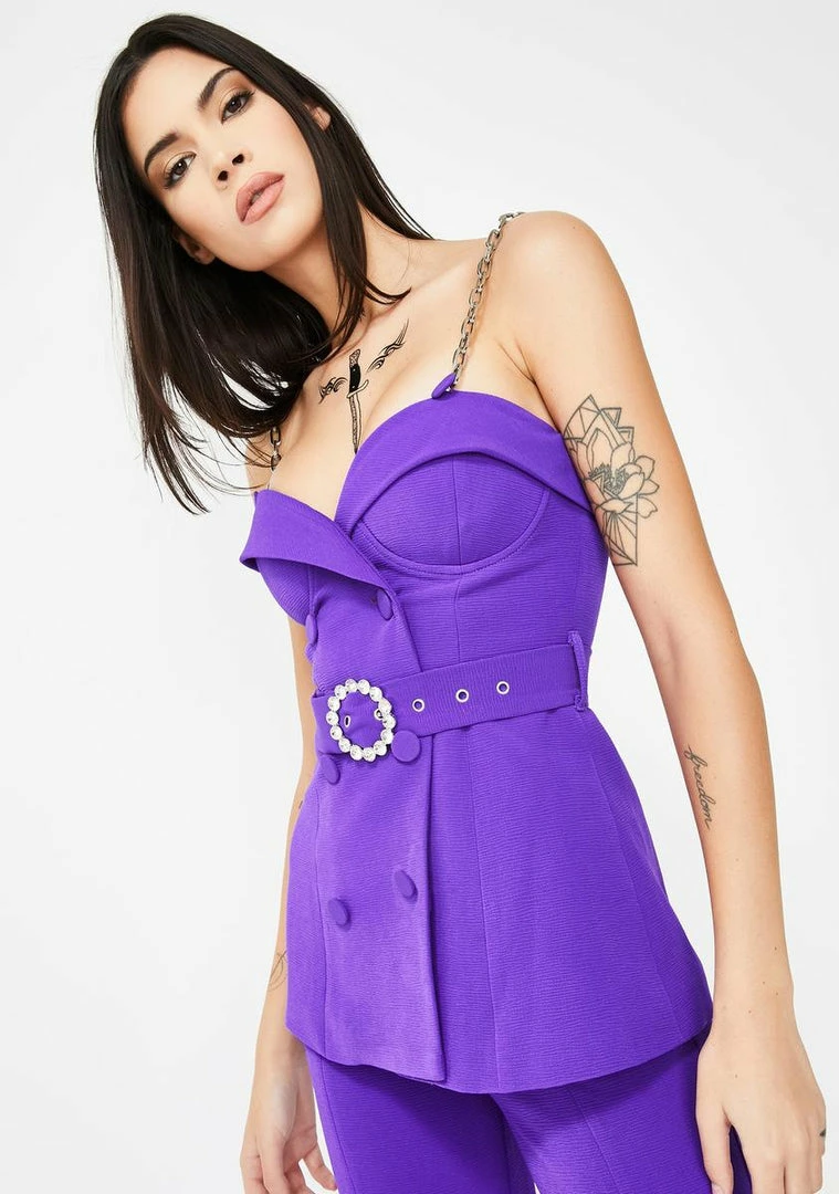 Be the first to review “Outlet π Jaded London Purple Suit Top With Chain Strap Detail Tops π” Cancel reply