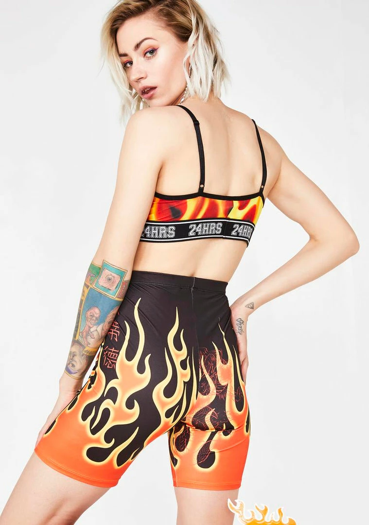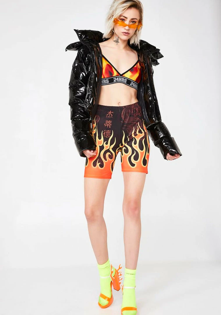 cuz youΓ’ΒΒre just too hot to handle babe! Feel the heat in these scorchinΓ’ΒΒ biker shorts that have an elastic waistband, a curve-hugginΓ’ΒΒ fit, and a dragon NΓ’ΒΒ flame print all ova.