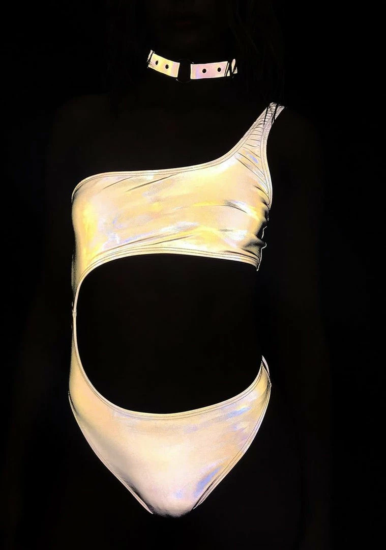 cuz you were born to stand out. Glow on sis in this showstoppinΓ’ΒΒ one shoulder bikini that has a sikk cut out, dope reflective material NΓ’ΒΒ supa stretchy material.