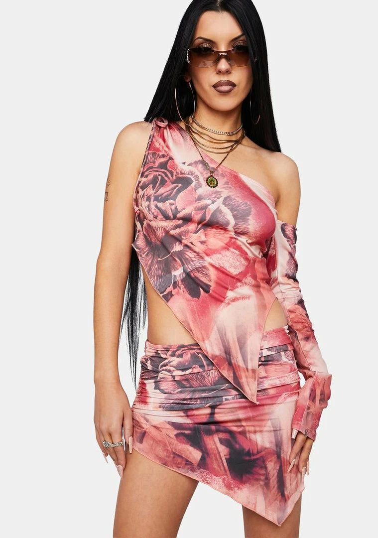 cuz you’re beauty and brains. This y2k mini skirt has an asymmetrical hemline, a ruched construction with adjustable drawstrings, a low rise fit, and a floral print all over.