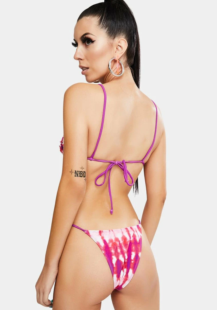 cuz you bring the sunshine. This bandeau bikini top has a tie dye print all over and adjustable tie back closures.