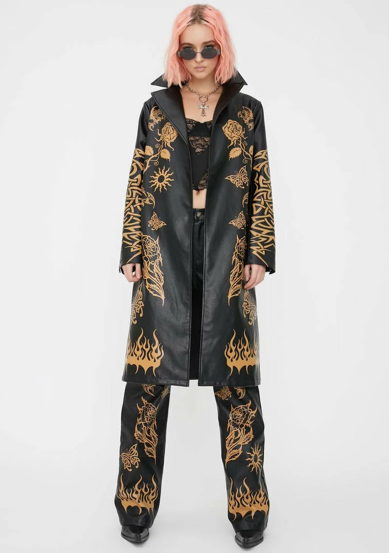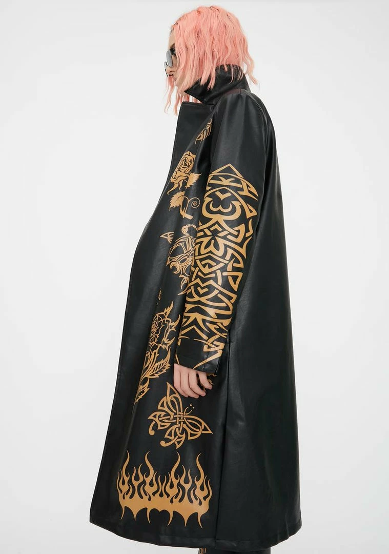 cuz youΓ’ΒΒre a whole mood, babe. Give Γ’ΒΒem dope AF vibez in this vegan leather mid-length jacket that has button closures, notched lapels NΓ’ΒΒ sikk tattoo prints.