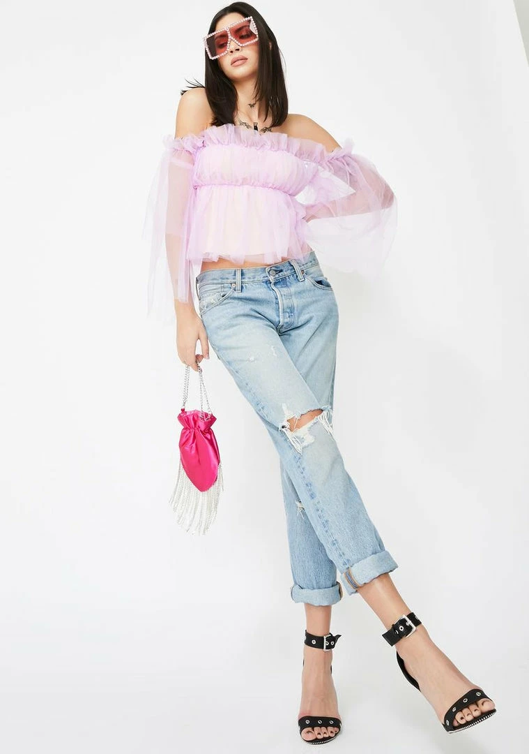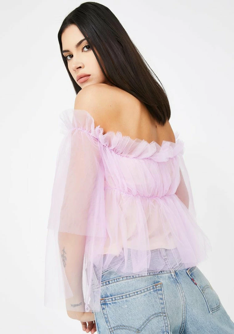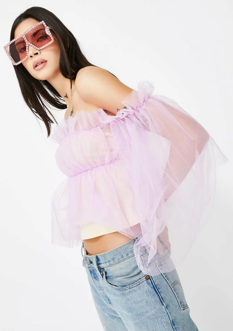 cuz youΓ’ΒΒre high classy NΓ’ΒΒ sassy, babe! Keep it chic in this ruffled mesh top that has off the shoulder sleeves and a nude underlay.