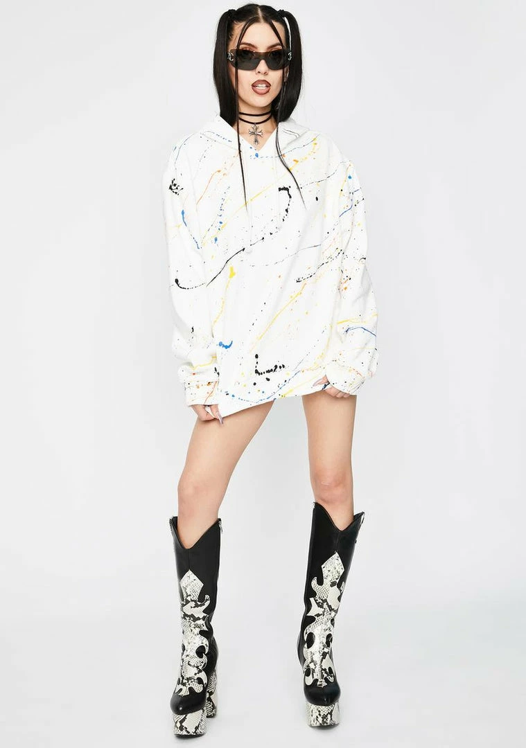 got ya goin’ totally wild! You’re the dopest doll in this oversized hoodie with drawstring pulls and a paint splatter print all ova.