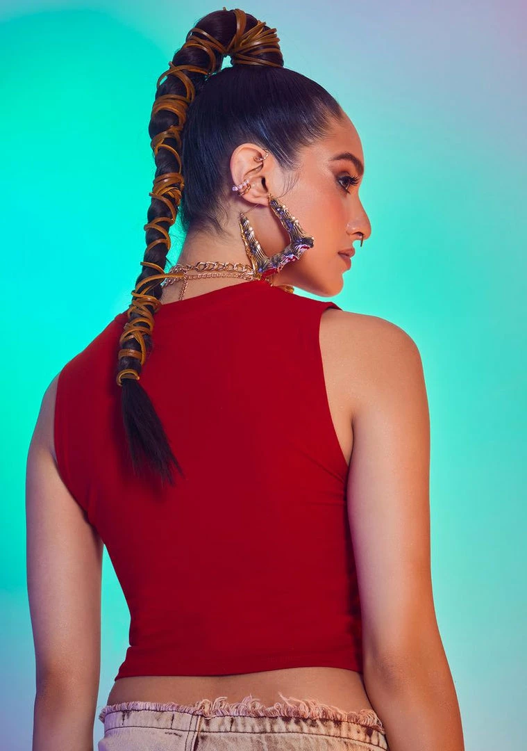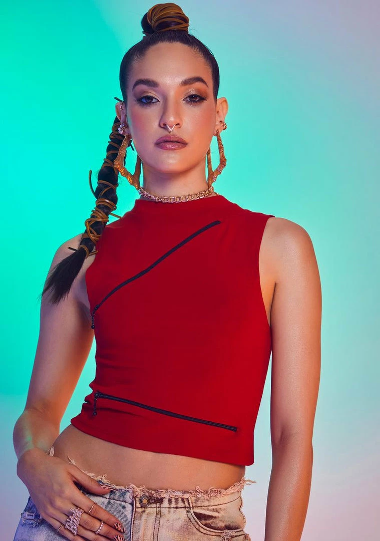 cuz youΓ’ΒΒre the ultimate remix. This top has a high neckline, a cropped fit, and zipper details on the front.