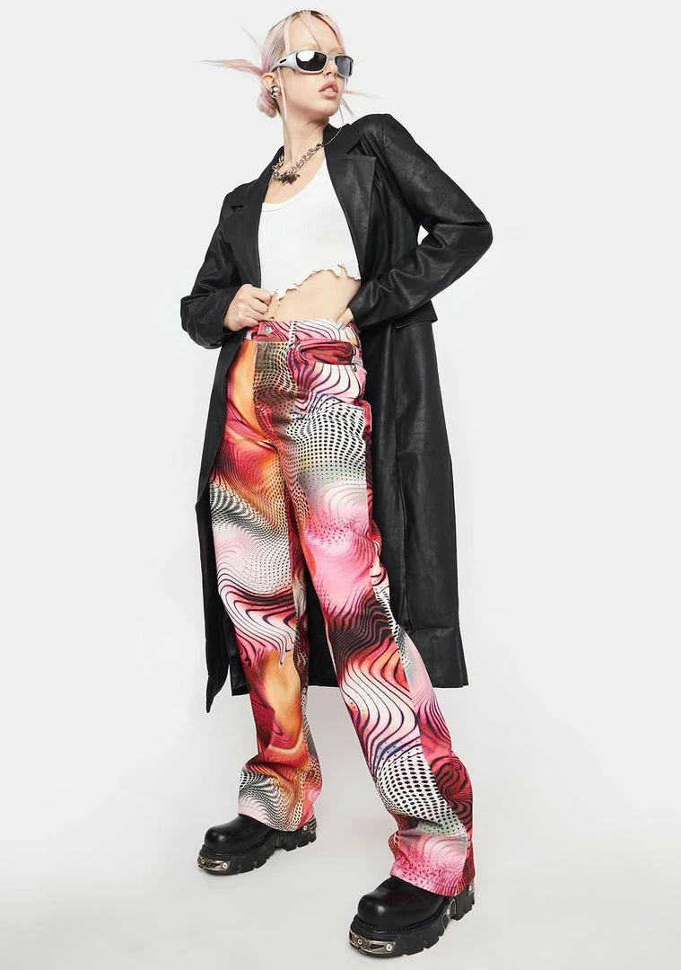 can you keep a secret? These slouchy boyfriend jeans have a denim construction with a trippy swirl print all over, a high waist fit, and functional pockets.