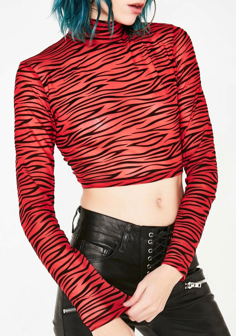 cuz youΓ’ΒΒre always feelinΓ’ΒΒ wild babe! Never blend in with this long sleeve crop top that has a zebra print mesh overlay, a mock neckline, and a supa soft NΓ’ΒΒ stretchy material.