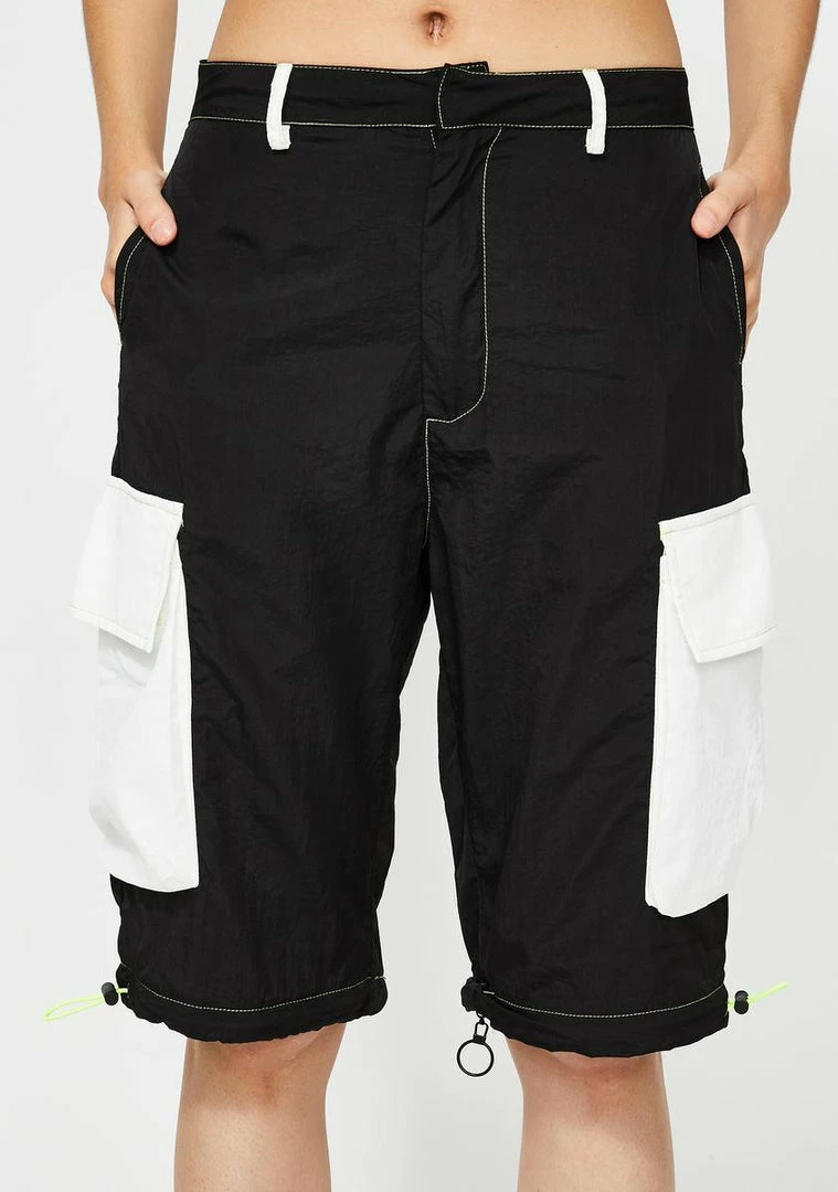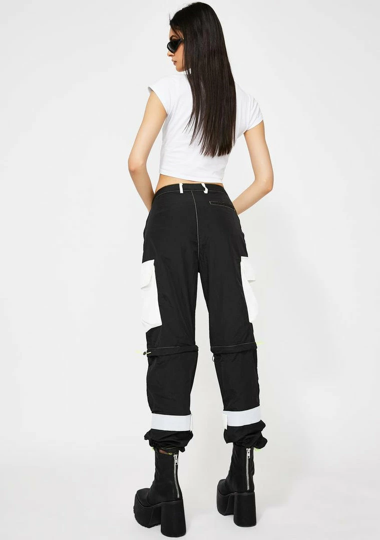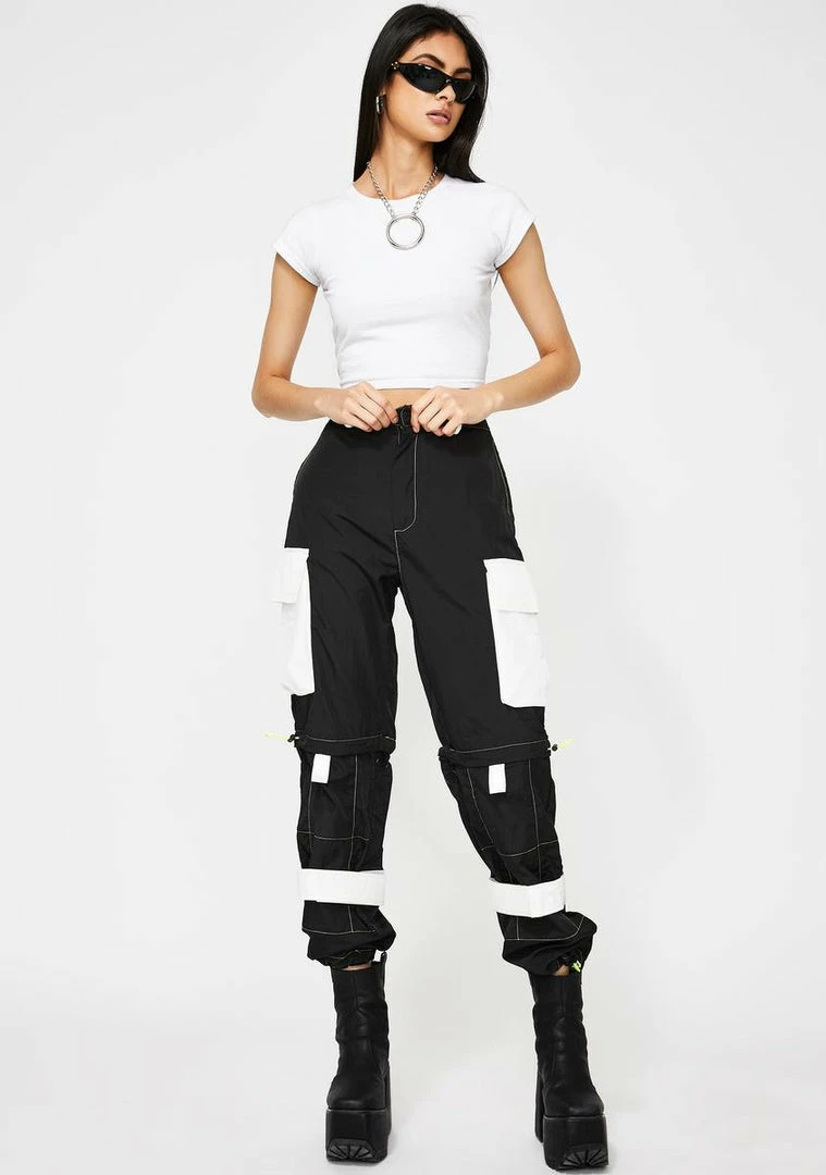got ya feelin’ like a bo$$ bish! Break all the rulez in these convertible zip off cargo pants that have a colorblock design, front N’ back pockets, lime green stitching and velcro ankle straps.